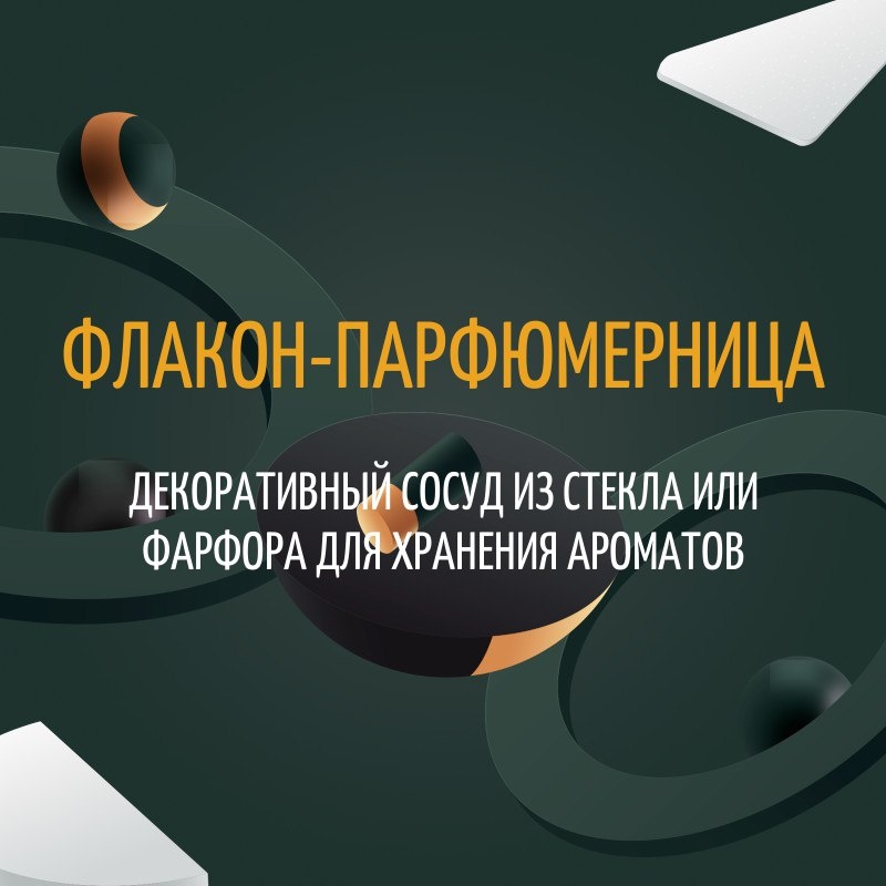 ФЛАКОН-ПАРФЮМЕРНИЦА декоративный сосуд из стекла или фарфора для хранения ароматов Флаконы-парфюмерницы появились ещё во времена Древнего Египта, но особого изящества достигли в XVIII–XIX веках во Франции и Англии. Такие сосуды изготавливали из фарфора, серебра, стекла, украшали росписью, позолотой, драгоценными вставками. На знатных балах флаконы служили не только хранителями духов, но и элементом статуса — содержимое наносили платочками, а миниатюрные сосуды носили на поясе или в сумочке. Встречались забавные формы: флакон в виде яблока, башмачка, птички. Сегодня коллекционирование антикварных парфюмерниц — отдельная страсть у ценителей фарфора и винтажной парфюмерии, ведь они отражают и технические возможности, и элегантность эпохи.