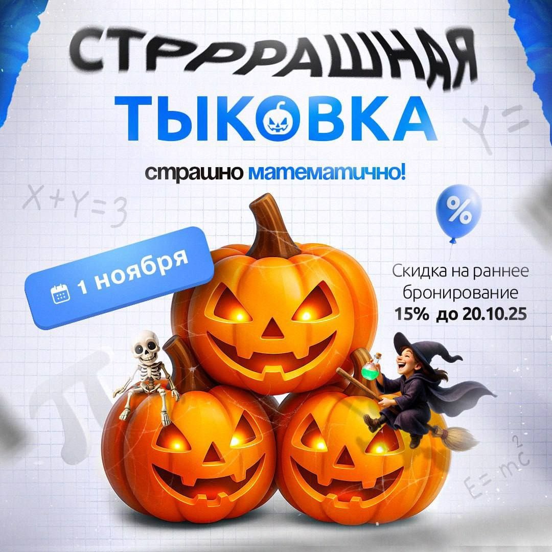Стрррашная тыковка от GeniusMath (vk.com/geniusmath)!🎃 👉 https://vk.com/app6013442_-123050516?form_id=82#form_id=82 👈 ❓Что такое «Стрррашная тыковка»? 🎤Это математическая игра с особым «тыквенно-паучьим антуражем» 👻🕷 ❓Где? 🎤Басков пер., д7, 3ий этаж, офис 3-10 (м. Чернышевская) ❓Когда? 🎤1.11 - первая суббота ноября ❓Для кого? 🎤Для учеников 4-9 классов ❓Можно ли прийти, если не ходите к нам на занятия? 🎤Да! Это отличная возможность познакомиться с нашей заводной компанией ребят и педагогов! ❓Что будем делать? 🎤Несмотря на все сложности программы, которые выпадают на долю наших учеников, дети остаются детьми. А что любят дети? Конечно же играть!🎉🎁🎊 Играть можно, играть нужно! Будем считать количество паучков, необходимое, чтобы съесть гуманитария🙈, будем вычислять скорость передвижения зомби, если он подкрепился тыквой и если чем-то повкуснее🧠😱😂 Играючи проведем время с пользой, будем решать нетривиальные задачи, учиться доказывать правильность решения и занима