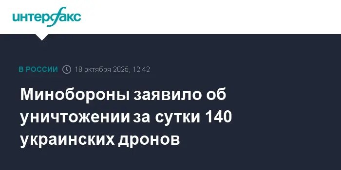 Минобороны сообщает о разрушении более 140 украинских дронов Минобороны РФ сообщило об уничтожении более 140 украинских дронов за сутки. Атаки фиксировались в нескольких регионах, включая Брянскую, Белгородскую, Курскую и Ростовскую области. Беспилотники были направлены на военные и инфраструктурные объекты. Интенсивность атак вызвала обеспокоенность и бурное обсуждение в обществе, подчеркивая нарастающее напряжение и вызовы в области безопасности. 📰 Читать тут: signaldaily.ru 🏞 Автор изображения: www.interfax.ru 📣 Присоединяйтесь: sgnaldaily