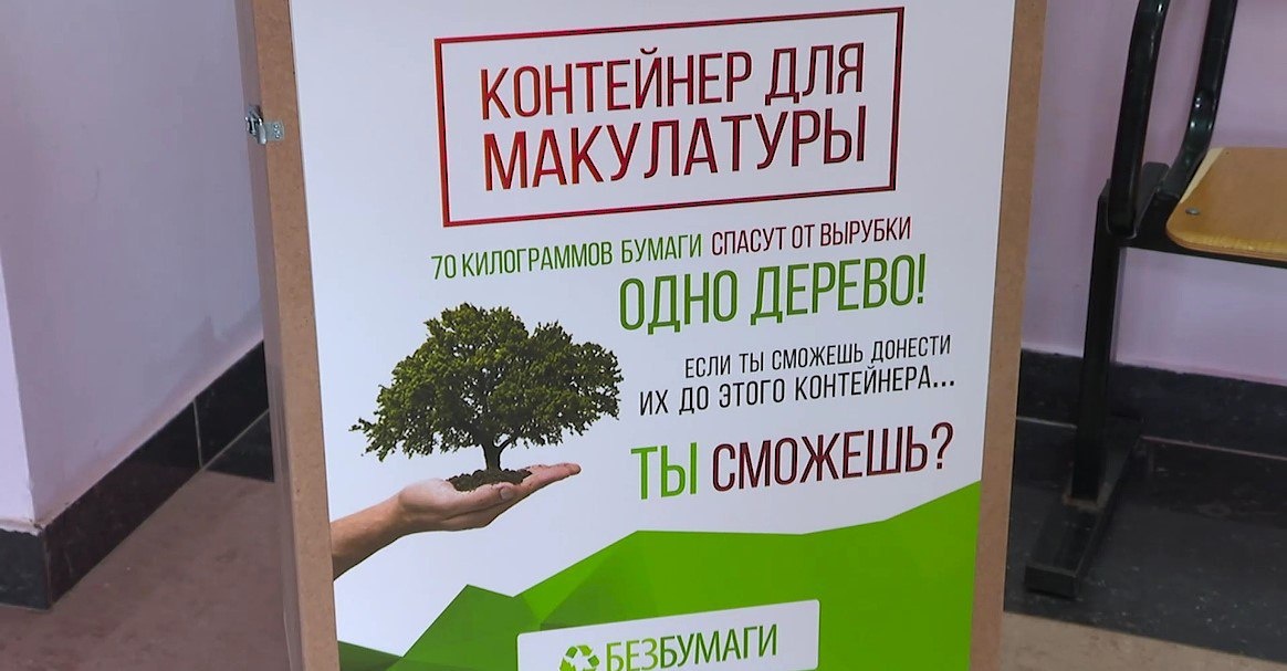 Контейнер сбора для макулатуры привезли из Нижнего Новгорода организаторы большого экопроекта «Без бумаги»
