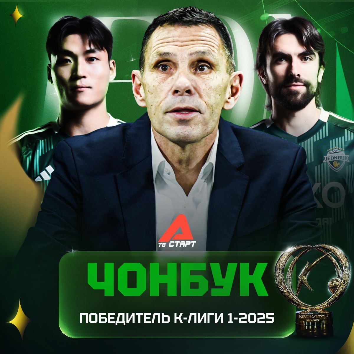 🏆🎉 «Чонбук» – чемпион Южной Кореи! Блестящий сезон от команды Густаво Пойета. Уругвайский тренер с первой попытки забрал титул К-Лиги 1 по итогам трех кругов. Впереди еще четвёртый, где команды разделятся на шестёрки, но «Моторс» уже никто не настигнет. В декабре «Чонбук» может оформить золотой дубль, если обыграет в финале Кубка «Кванджу» ⚔ Подписывайся на ТВ СТАРТ в MAX📲
