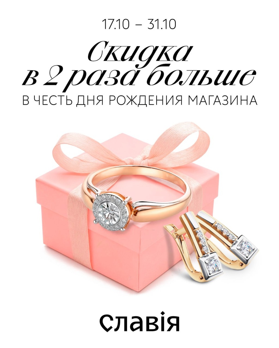 День рождения магазина Славия в Лунинце 🎁 Приглашаем всех разделить с нами праздник! Только с 17 по 31 октября вас ждёт: • двойная скидка по Карте клиента – до 14% • скидки на золотые и серебряные украшения до 60% • последний шанс забрать украшение мечты в шкатулку - распродажа трендов! А ещё – благородные классические коллекции украшений, рассрочка и кредит без первоначального взноса, и обмен золота по приятной цене до 323 рублей за грамм 💞 За отличным настроением и драгоценными подарками приходите в магазин Славия! Мы ждём вас по адресу: 📍 г. Лунинец, ул. Фрунзе 9 ⏳ Будни: 10:00-19:00 Сб-Вс: 10:00-17:00 УНП 400214298.