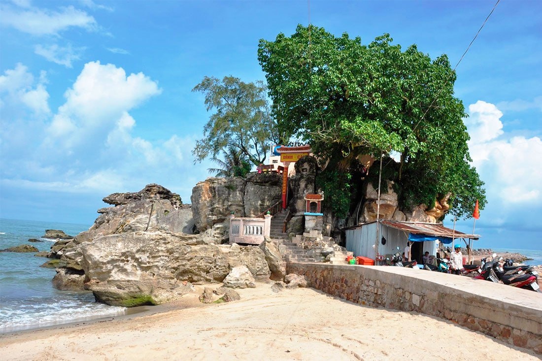 Динь-Кау-Рок (Храм Кау) Рядом с рыбацкой гаванью Дуонг-Донг, на скале Динь-Кау, представляющей собой природное образование странной формы, находится буддистский храм с террасой на крыше, также известный как храм Кау, и небольшой маяк при нем. Возведен этот храм был в 1937 году и посвящен Тхиен Хау (Богини моря), которая, как полагают местные жители, оберегает рыбаков, отправляющихся в море. На вершину храма Кау, откуда открывается захватывающий вид на закат, пляж Динь-Кау, город Дуонг-Донг и соседние островки, ведут 29 каменных ступеней. Вход в Динь-Кау-Рок бесплатный. У подножия храма вы найдете множество киосков с едой и напитками. Проще говоря. Фукуок
