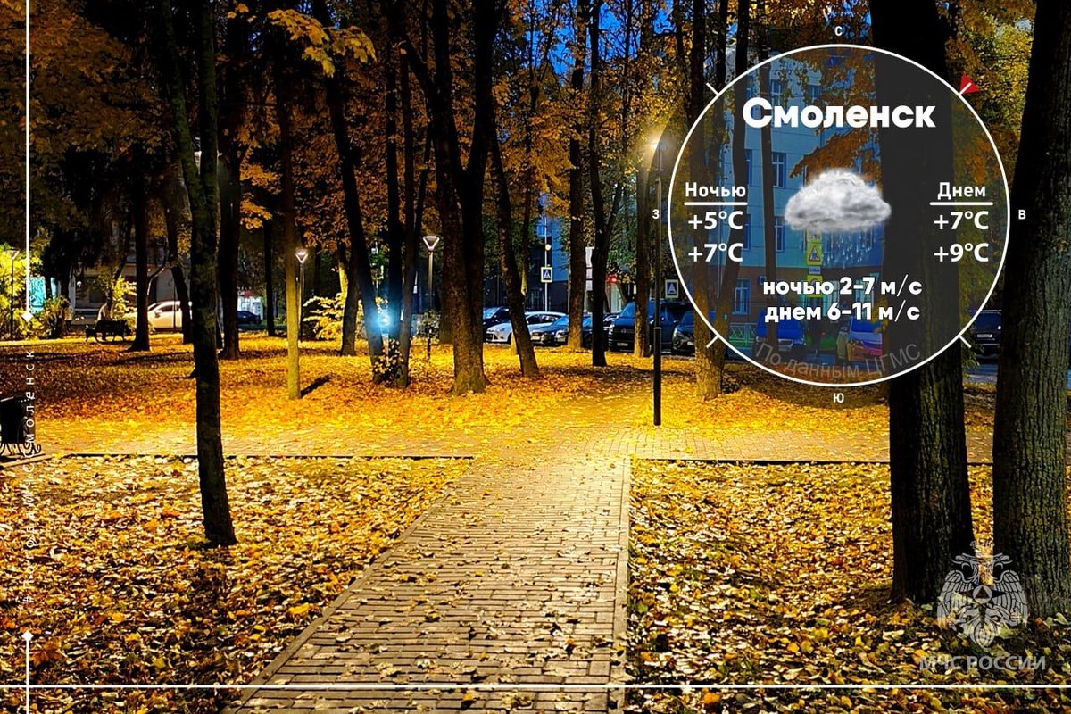 ☔️Смоленск в объятиях дождя 19 октября на территории Смоленской области ожидается облачная погода с дождями. Ночью ветер будет дуть с северо-восточный со скоростью 2-7 м/с, а днём его скорость увеличится до 6-11 м/с. 🌡Температура воздуха: по области: ночью +2°C …+7°C, днём +5°C …+10°C, в Смоленске: ночью +5°C …+7°C, днём +7°C …+9°C. Величина атмосферного давления 740 мм. рт. столба, существенно меняться не будет. Обо всех изменениях в погоде смотри на сайте ❗️МЧС России напоминает: чтобы спастись от небесной влаги возьми с собой зонт, а чтобы защитить свой дом от пожара установи автономный дымовой пожарный извещатель и приобрети огнетушитель. @ГУ МЧС России по Смоленской области #МЧСРоссии #ПогодаСмоленск Подписывайся на МЧС России в Telegram | MAX