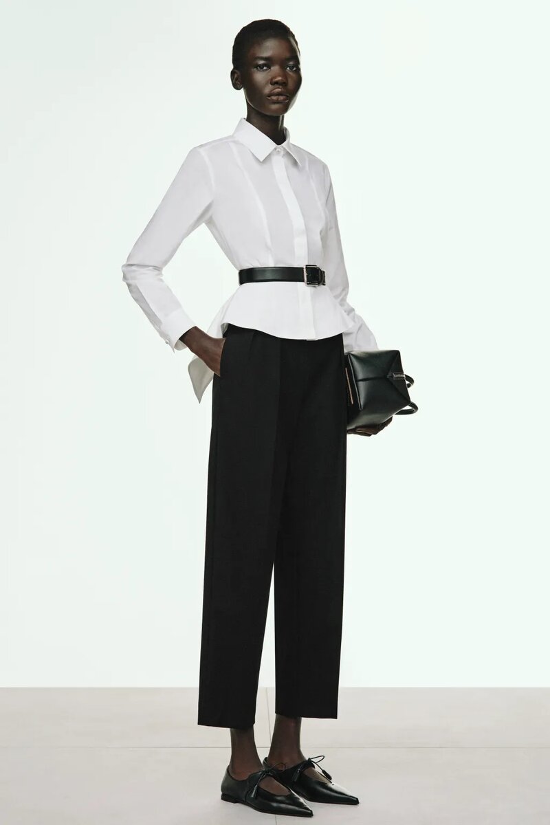 Обещала я показать ещё один вариант блузы и этот вариант не про складки и сборки. Он ближе к базе, так как есть и строгий воротничок, и планка на пуговицах. Но в отличии от базы, у этой модели есть очень красивая деталь- баска: Постоянно идут споры: актуальна она или нет. Я скажу, что да . Вот эта модель из коллекции Max Mara этого года. И в этой коллекции есть та самая актуальная блуза, о которой я писала до этого: Так что выбор есть и не обязательно носить только такие блузы) С баской важно понимать какая она сейчас именно в плане кроя и как её вписать в то или иное изделие. Но про баски и её особенности поговорим отдельно, а сегодня давайте про блузы. Вариант с баской отличная альтернатива обычным базовым блузам, которые почти все сейчас заправляются в брюки или юбку. Но ведь хочется носить не заправляя, так как не всегда это удобно и возможно по разным причинам. А ещё знаете, что мне понравилось в первой блузе? Это рельефы от плеча. Многие реально устали от свободных силуэт