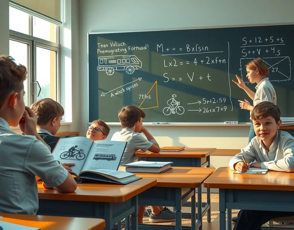 Почему у большинства семиклассников тексты с поездами и велосипедистами вызывают панику? «Два поезда вышли навстречу друг другу…» — и всё, мозг выключается. Знакомо? А ведь текстовые задачи на движение в 7 классе — это не страшная математика, а просто логика, замаскированная под историю. И если понять один принцип — решать их можно даже без калькулятора! Главная причина — неформулировка, а невидимая путаница между скоростью, временем и расстоянием. Ученики часто пытаются «угадывать» формулы, вместо того чтобы видеть логику задачи. Например, фраза «два пешехода идут навстречу» путает многих. Но если мысленно представить, что они просто «сближаются», то задача превращается в простое уравнение: