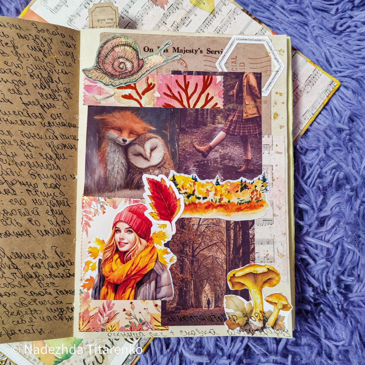 Тема: осенний лес + сказка 🍂🍂 Засела вчера вечером за этот разворот и родилась небольшая сказка о зайчике по имени Питер и принятии себя. 🌿🌿🌿🌿 "Осенний лес сиял. Золото и багрянец листьев кружились, а воздух пах грибами. Зайчонок Питер сидел под кустом, смущенно прижав ушки. Всё вокруг было ярким, а его шубка – все еще летняя, серовато-бурая. Он мечтал о белоснежном наряде зимы, но пока чувствовал себя невзрачным среди этой осенней феерии. "Я такой обычный," – шептал он, сравнивая себя с пышными кленами. Однажды Питер услышал тонкий писк. Птенец, выпавший из гнезда, дрожал под кустом. Большие звери не замечали его. Но Питер, с его скромной внешностью, смог подойти близко, не напугав. Осторожно подтолкнул птенца на дерево к его маме-птице. Питер вдруг осознал: его незаметность – это сила. Она позволяла ему быть деликатным, замечать то, что другие не видят. Он был важен именно таким. Он выпрямился. Его серая шубка казалась теперь уютной и правильной. Он принял себя. Лес продо