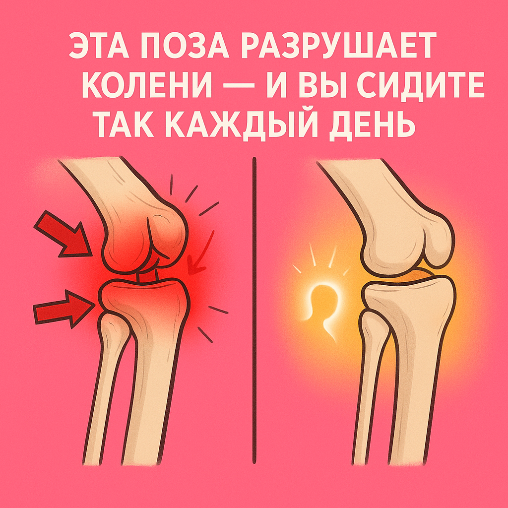Но именно в ней колени получают неравномерную нагрузку. Что происходит: Через несколько лет — хруст, отёки и боль при ходьбе. “Каждый час в позе нога на ногу — минус неделя здоровья колен