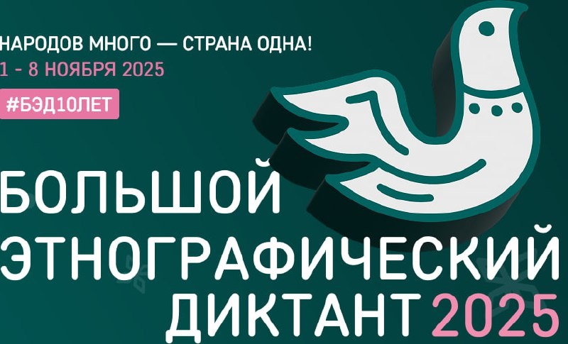 ✍️ С 1 по 8 ноября 2025 года во всех регионах России и за рубежом состоится Юбилейный X Всероссийский просветительский проект "Большой этнографический диктант". Диктант, состоящий из 30 вопросов, проверит знания участников о культуре народов России и позволит оценить уровень этнокультурной грамотности. Принять участие может любой желающий, независимо от возраста и образования. На выполнение заданий отводится 45 минут. Мероприятие призвано привлечь внимание к этнокультурному образованию и поддержанию межнационального согласия. ✅ Результаты акции будут подведены 12 декабря 2025 года, в День Конституции Российской Федерации.