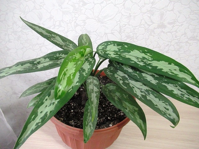 Аглаонема ценится из - за свое листвы, которая бывает и в полоску, и в крапину, и с цветными прожилками. Листья бывают и узкие, и широкие, и даже сердцевидные, Существует более 50 видов и 200 сортов аглаонемы. Чаще всего аглаонемы цветут летом, но бывает, что и зимой. Цветочки невзрачные, и я их обычно через несколько дней цветения убираю. Расти аглаонема любит в тепле, при температуре не ниже +18 градусов, ей комфортно, когда +22- +25 градусов. 1. Место. Выбирая место для аглаонемы, нужно помнить, что растение нельзя ставить под прямые солнечные лучи. От прямого солнца листья будут желтеть и на них появятся сухие пятна. Идеально, если аглаонеме найдется растение рядом с окошком, но чтобы свет был рассеянный (прячем от солнца за тюлевую занавесочку). У меня аглаонема с зелеными листьями и спокойно стоит на стеллаже немного в глубине комнаты. Света растению достаточно, но прямые солнечные лучи до неё не добираются. Свет растениям нужен для фотосинтеза, и пусть даже аглаонема стоит и в г