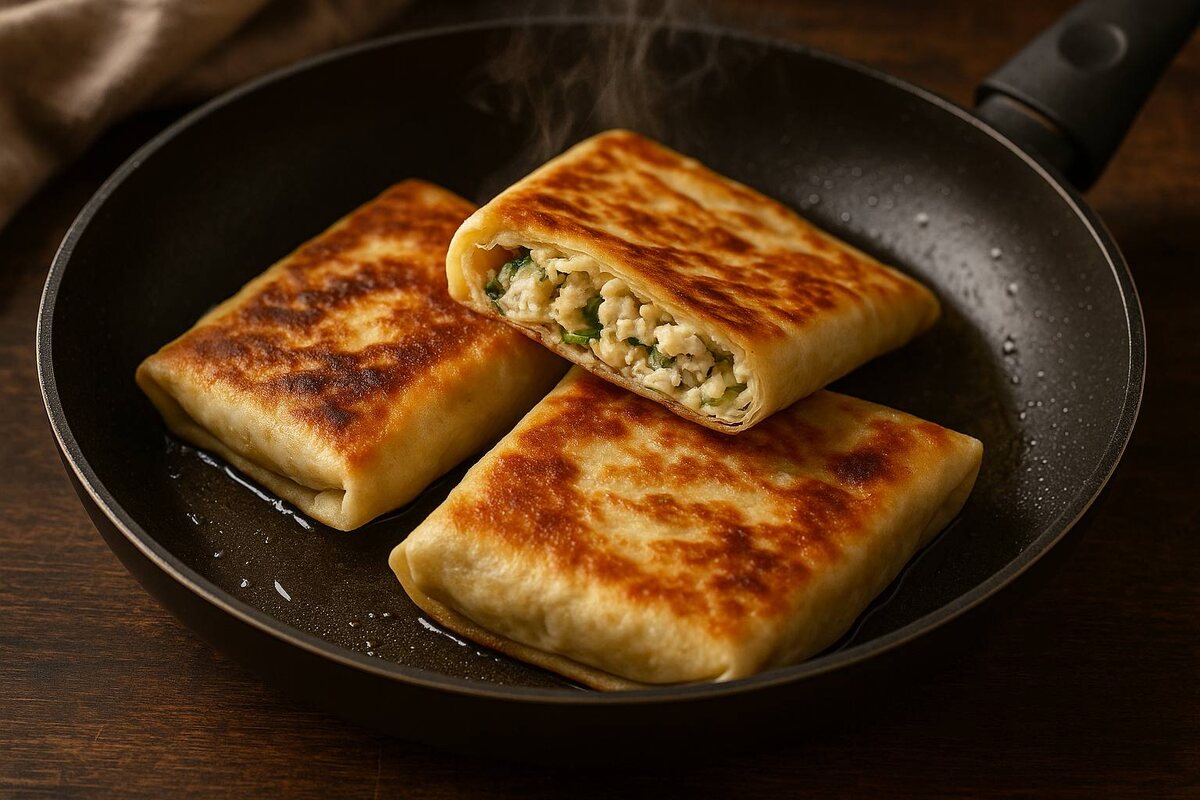 Иногда хочется простого счастья — взять лаваш, открыть холодильник и завернуть туда всё вкусное. Без выпечки, без духовки, только сковорода и пара минут терпения. Так у нас дома рождаются любимые “рулетики спасения” то, что выручает и на завтрак, и на ужин. Главное правило: тонкая намазка и правильный “замок” — тогда ничего не потечёт, и ни одной зубочистки не понадобится. Нежный творог, зелень, немного соли и ложка сметаны — всё просто. Можно добавить укроп или зелёный лук, а если хочется послаще, заменить зелень изюмом и мёдом. Главное не переусердствовать с начинкой: тонкий слой и рулетик получится равномерно прожаренным, с золотистой корочкой. Самая любимая начинка — сытно, ароматно и быстро. Отварное куриное филе измельчаем, смешиваем с натёртым сыром и ложкой майонеза или йогурта. Если есть время, добавьте пару кусочков болгарского перца или кукурузу. Секрет в том, что надо слегка остудить смесь перед заворачиванием, чтобы сыр не убежал раньше времени. Когда дома пахнет жареными