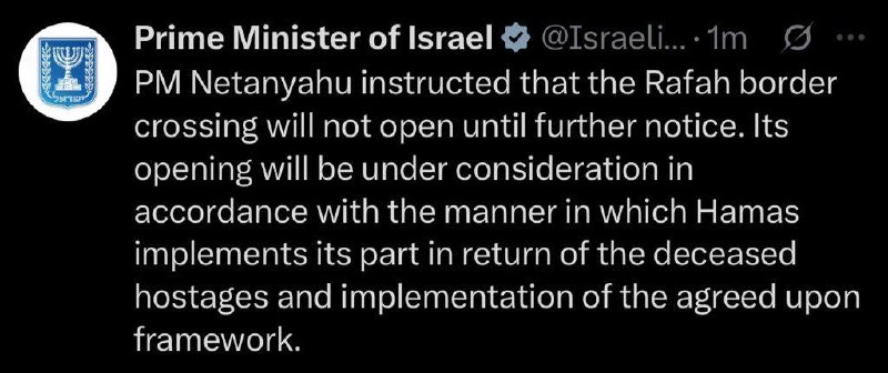 Rafah border reopening CANCELED by Netanyahu — ‘Until further notice
