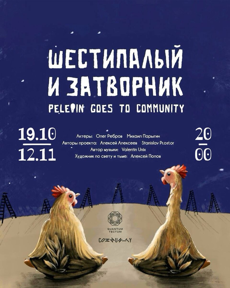 Шестипалый и Затворник возвращаются в Community – сразу на два вечера! Спектакль-притча творческой лаборатории Quantum Tectum по мотивам повести Виктора Пелевина о духовном поиске, свободе и обретении Пути.