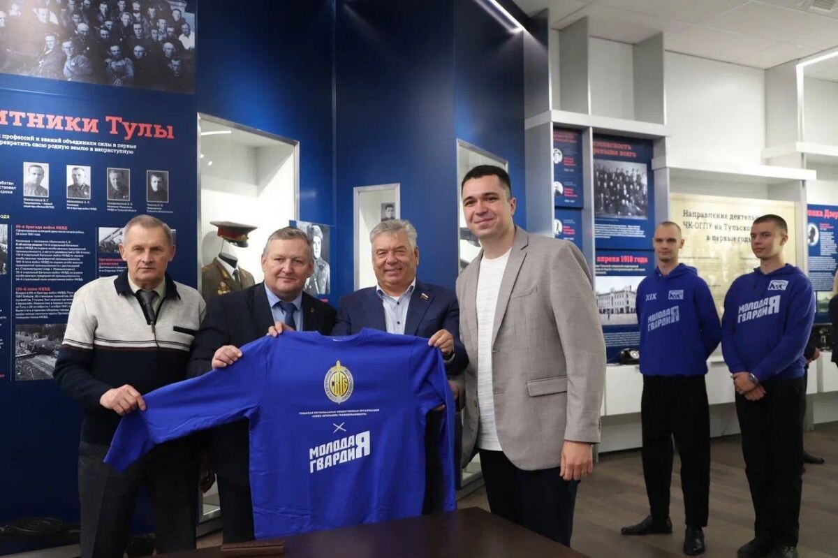 В рамках федерального партийного проекта "Историческая память" активисты "Единой России", "Молодой Гвардии" и "Волонтёрской Роты" посетили историко-демонстрационный зал УФСБ России по Тульской области. Визит состоялся при участии сенатора РФ Николая Воробьёва. Для гостей была организована экскурсия по залу, где представлены уникальные экспонаты, отражающие историю органов безопасности и важные события региона. Посетители ознакомились с материалами о роли УФСБ в обеспечении государственной безопасности и ключевых моментах истории России. Руководители ветеранской организации УФСБ Виктор Бессонов и Евгений Бирюков поделились историей регионального управления ФСБ, рассказав о его становлении и первых руководителях. В современном демонстрационном зале регионального управления ФСБ участники увидели электронные копии рассекреченных архивных документов. Значительная часть экспозиции посвящена деятельности Управления в годы Великой Отечественной войны, а также участию сотрудников в контртеррори