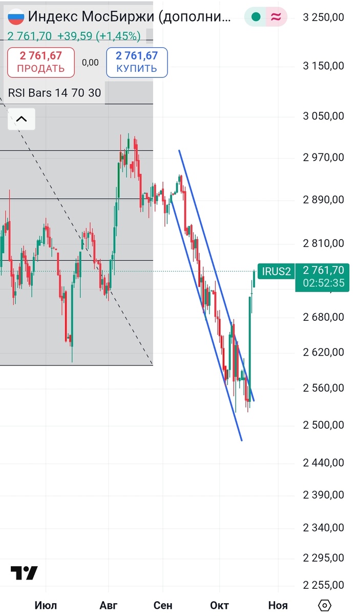 📉Итак, в четверг всё изменилось очень быстро. Появилась информация о том, что будет звонок Путина Трампу. На этом рынок ушёл выше 2600. После, когда появились первые комментарии, индекс ММВБ ушёл выше 2700. Это можно назвать Трамппамп. В пятницу ситуация принципиально не поменялась.