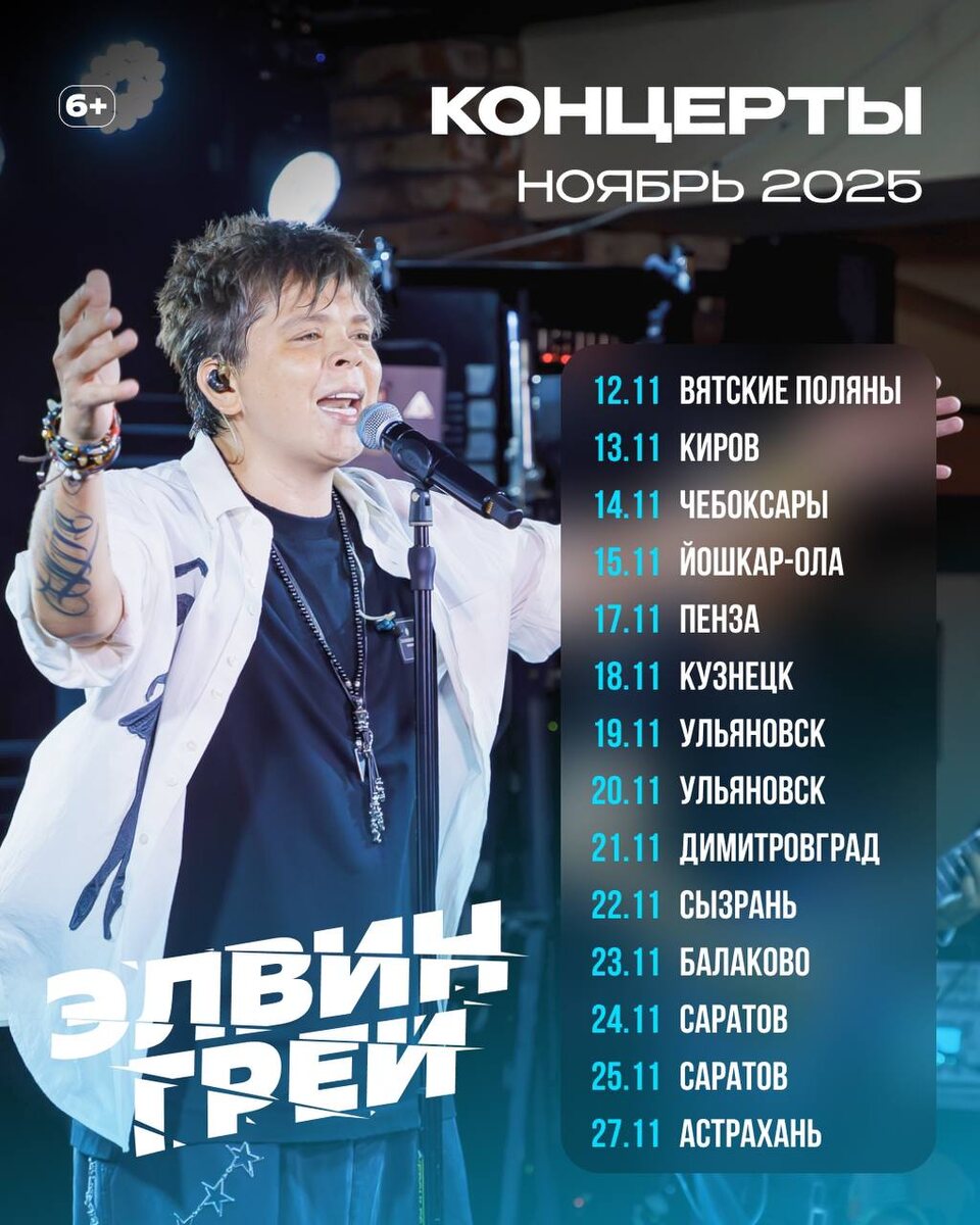 Друзья! Встречаемся в ноябре, чтобы вместе создать самые теплые и яркие воспоминания осени! Берите с собой самых близких, прихватите заряженное настроение и желание отрываться по полной! С нетерпением жду встречи с вами🤗 🎫 Билеты на сайте elvingrey.ru, ссылка в шапке профиля #элвингрей #elvingrey