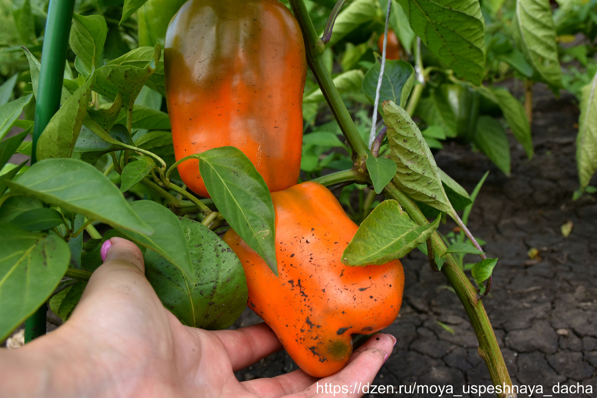 В этом году решила поэкспериментировать и посадила у себя на участке новый для меня сорт перца под названием "Оранжевый бык". Название, конечно, интригующее, да и отзывы в интернете встречались довольно положительные. Делюсь своими впечатлениями. Средний вес плода составляет 200 грамм. На пакетике с семенами было написано, что отдельные экземпляры могут достигать 400 грамм, но у меня такие увесистые перчики не выросли. Максимум 250 грамм, но при этом они все равно были крупными. ✅ Для получения обильного урожая перца "Оранжевый бык" рекомендуется придерживаться определенных агротехнических приемов. Важно обеспечить растениям достаточное освещение, регулярный полив, особенно в период активного роста и плодоношения. Однако следует избегать переувлажнения почвы, которое может привести к развитию грибковых заболеваний. ✅ Подкормки минеральными удобрениями способствуют увеличению урожайности и улучшению качества плодов. ✅ Формирование куста также играет важную роль в обеспечении хорошего у