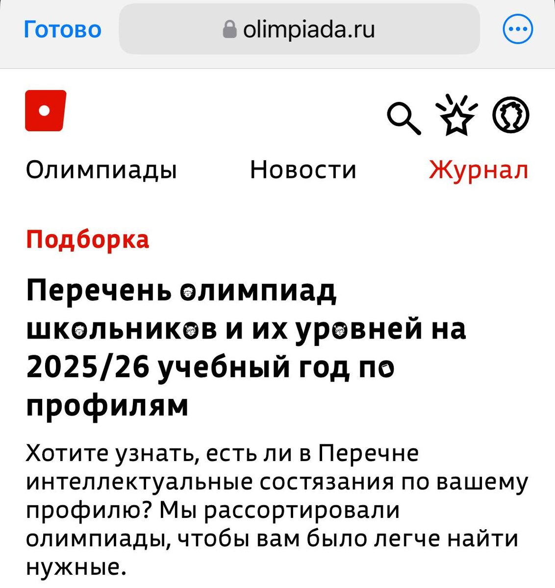 На сайте olimpiada.ru появилась удобная интерактивая подборка всех перечневых олимпиад 2025/2026. Олимпиады рассортированы по предметам и уровням олимпиад👍