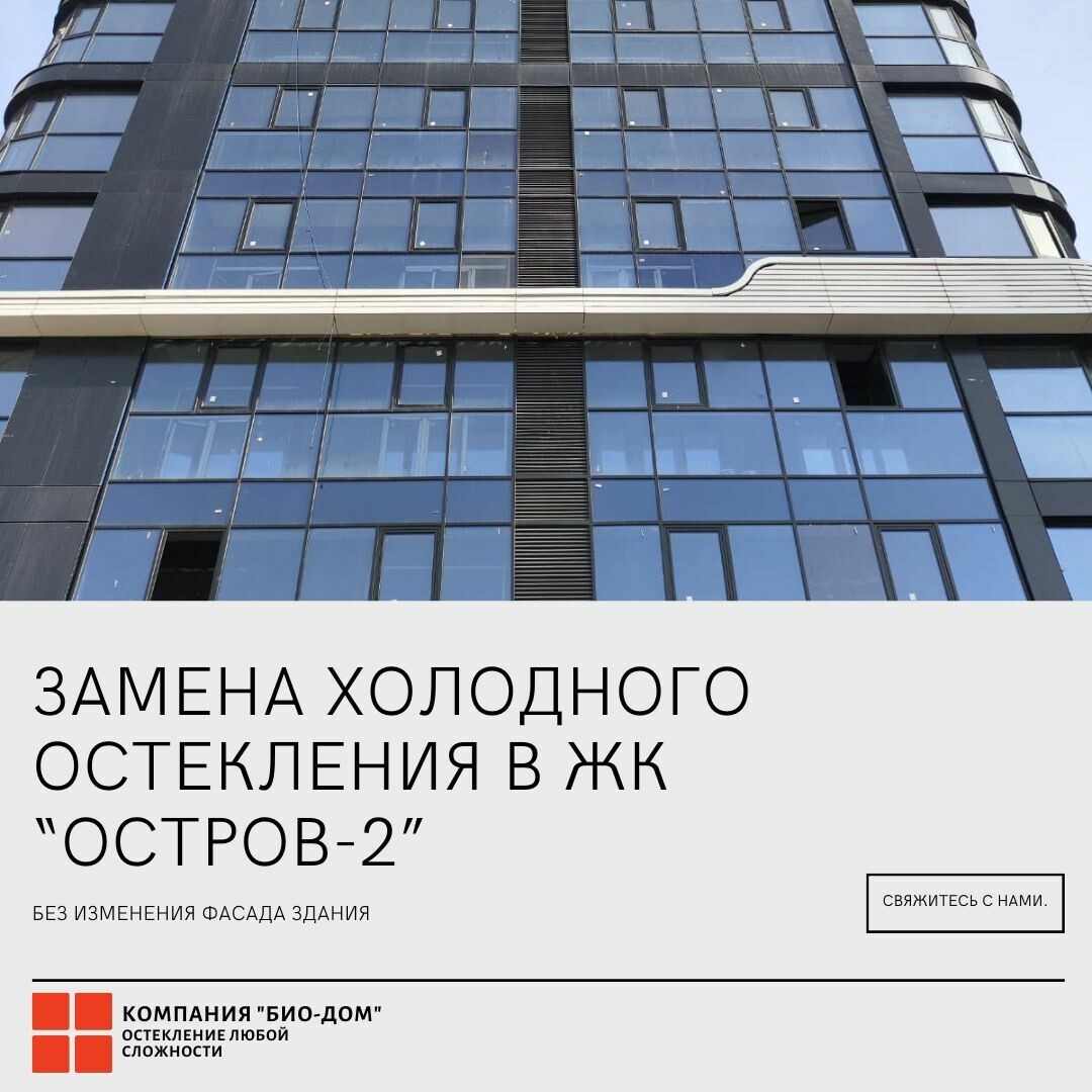 Компания «БИО-дом» завершила проект по замене холодного фасадного остекления на тёплое в ЖК «Остров-2» (г. Москва, ул. Нижние Мнёвники, д. 16, к. 2). Основные работы проводились с внешней стороны здания с помощью альпинистов. Изначально на лоджии застройщиком остекление выполнено на базе стоечно-ригельной фасадной системы. Мы реализовали её тёплый вариант без компромиссов для фасада — визуально здание сохранило свой первоначальный облик. Тёплое остекление балкона значительно повышает комфорт круглый год: сокращает теплопотери зимой и предотвращает перегрев помещения летом, снижает уровень уличного шума и не допускает проникновения пыли. Балкон с таким остеклением превращается в полноценное пространство — например, кабинет, зону отдыха или место хранения — без «эффекта холодного стекла». Стоечно-ригельная фасадная система остекления, применённая в ЖК «Остров-2», по каталогу производителя может выполняться как в «холодном», так и в «тёплом» варианте. Изначально застройщик установил «холо
