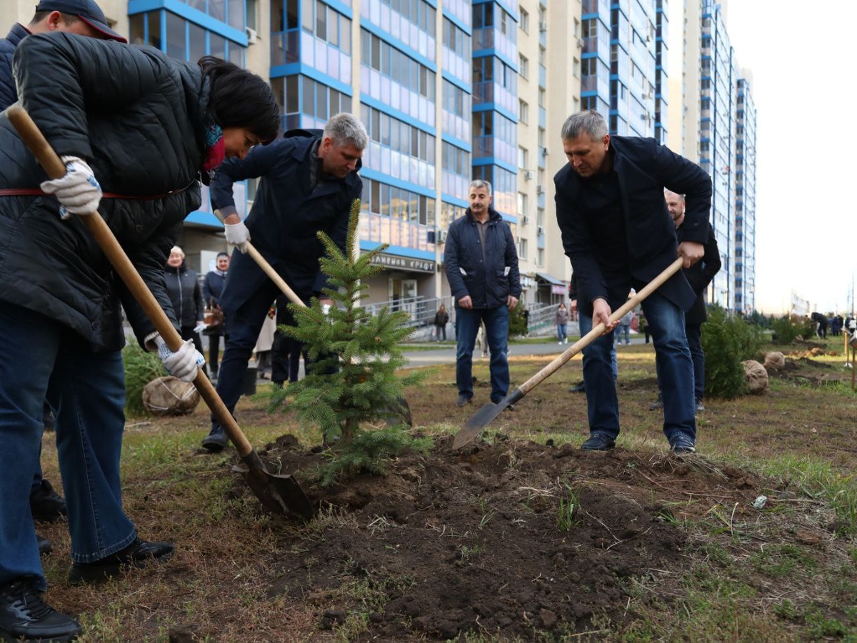 🌲 Мэр Самары Иван Носков вместе с жителями высадил новые ели в микрорайоне Волгарь