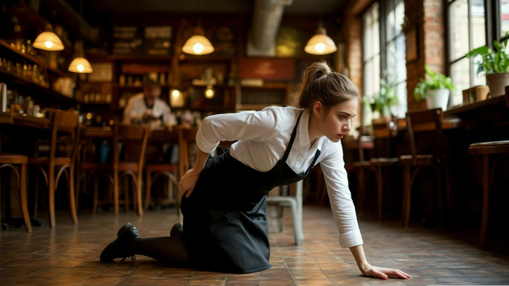 Первые дни прошли спокойно. Она училась подавать бокалы, запоминала имена постоянных клиентов, старалась не смотреть в пол. Но однажды вечером всё изменилось.