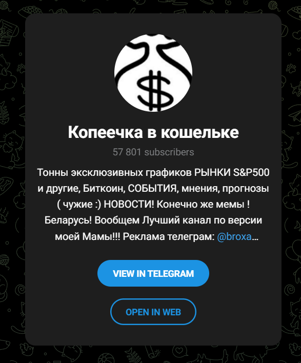 Канал «Копеечка в кошельке» в Telegram t me/kopeechkav и YouTube был создан Фёдором Смирновым в 2017 году. На момент написания статьи Telegram-канал насчитывает около 57 000 подписчиков, а YouTube-канал — более 133 000 подписчиков. Контент включает в себя новости, графики, прогнозы финансовых и криптовалютных рынков, а также мемы и личные мнения. Однако, несмотря на внушительную аудиторию, проект вызывает сомнения в своей надёжности и прозрачности.