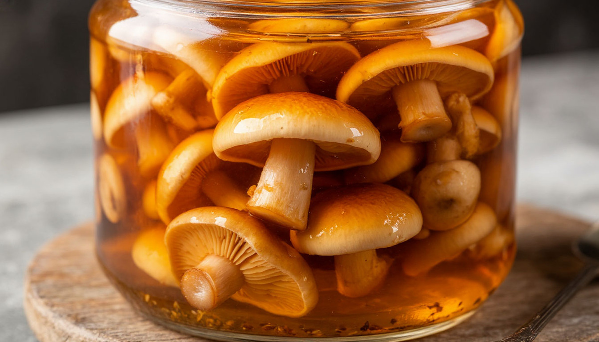 Маринованные опята на зиму — это настоящий аромат леса в банке. Хрустящие, нежные и насыщенные специями, они сохраняют свой неповторимый вкус и аромат. Идеальная закуска для праздничного стола или уютного семейного ужина, которая радует своей натуральностью и простотой. 1. Подготовка грибов: Тщательно очистите опята от лесного мусора, хвои и земли. Обрежьте ножки у старых или жёстких грибов, оставив только шляпки и мягкую часть ножек. Промойте грибы в нескольких водах. 2. Варка: Поставьте грибы в кастрюлю с холодной водой и доведите до кипения. Варите 15–20 минут, снимая пену шумовкой. Слейте воду и промойте грибы холодной водой. Это уменьшает горечь и делает опята более хрустящими. 3. Приготовление маринада: В кастрюле вскипятите 500 мл воды. Добавьте соль, сахар, лавровый лист, перец горошком и душистый перец. Дайте покипеть 5 минут. 4. Маринование: Банки и крышки тщательно вымойте и простерилизуйте (в кипящей воде или духовке). Выложите в каждую банку немного зелени и 1–2 зубчика че