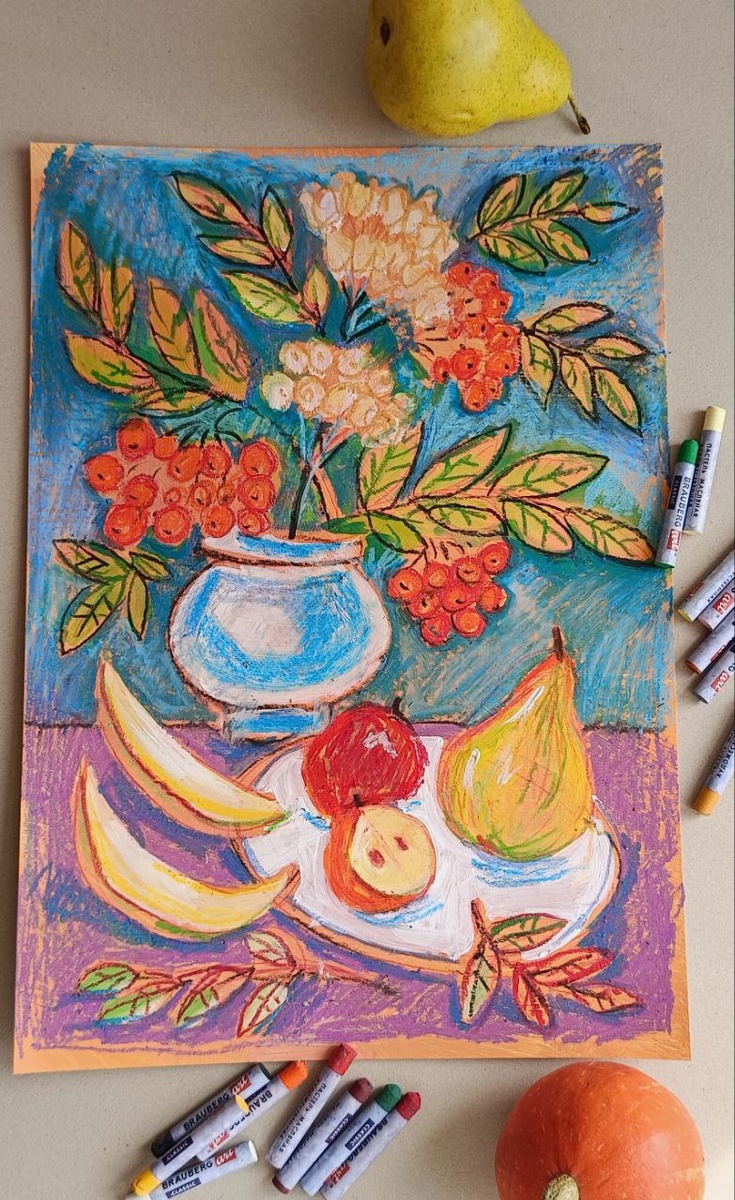 19 октября (воскресенье) 2025 г. в 14:00 в Детской художественной галерее РОМИИ состоится творческое занятие «Фруктовый натюрморт» из цикла «Семейный изопрактикум». Мастер–класс для детей старше 7 лет, бумага смешанная техника.