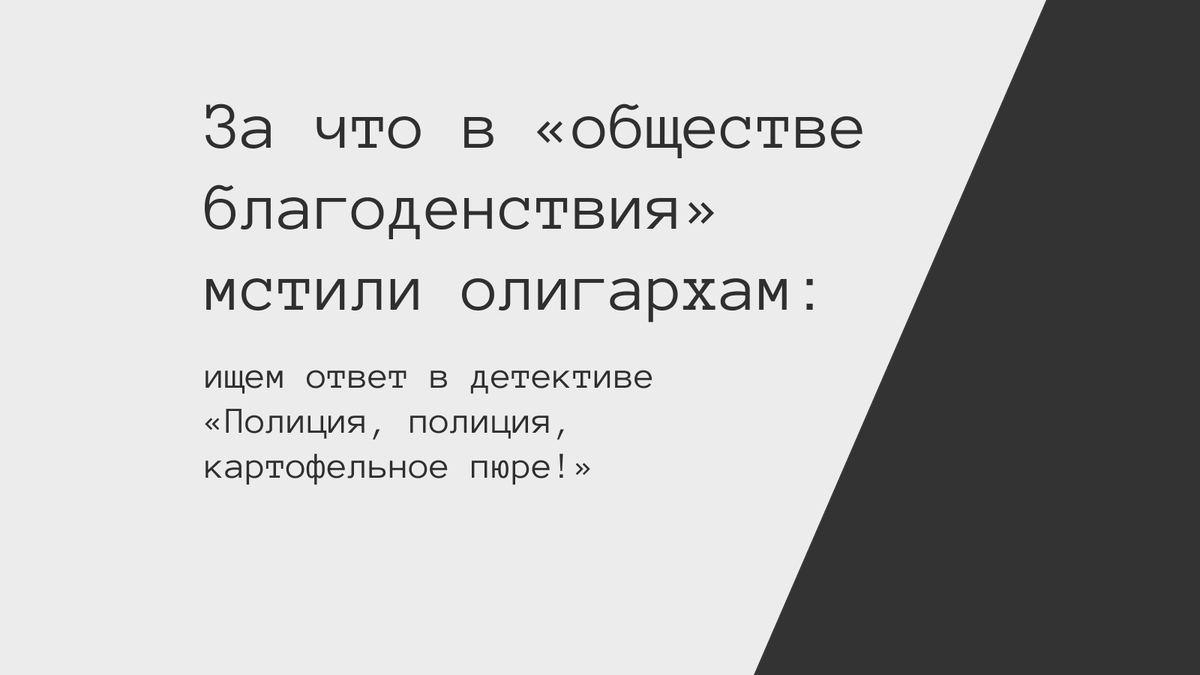 За что в «обществе благоденствия» мстили олигархам: ищем ответ в детективе «Полиция, полиция, картофельное пюре!»