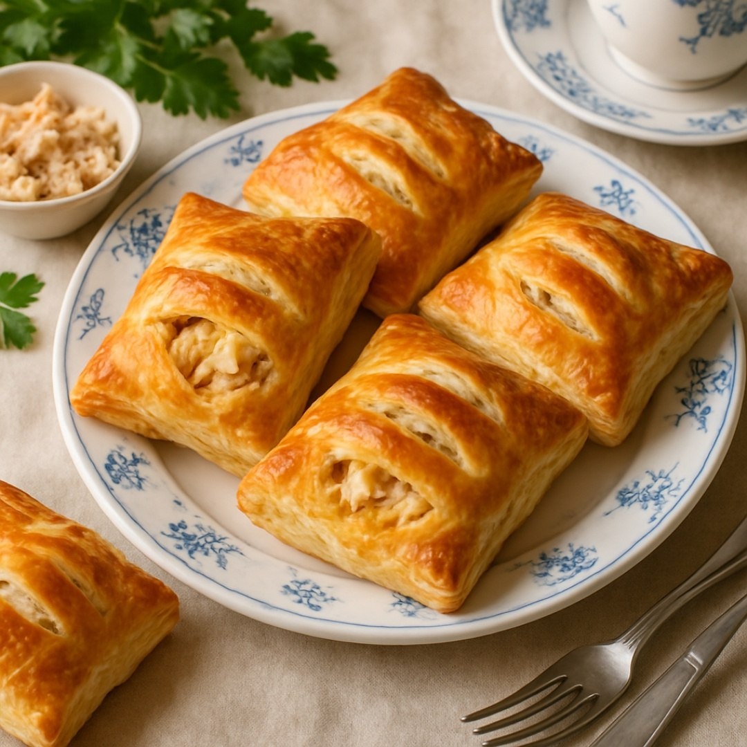 Слойки с курицей Ингредиенты ⤵️ 🔸 Слоеное тесто бездрожжевое – 500 г 🔸 Филе куриное – 400 г 🔸 Лук репчатый – 1 шт. 🔸 Сыр твердый – 150 г 🔸 Яйцо – 1 шт. 🔸 Сливки 20% – 100 мл 🔸 Чеснок – 2 зубчика 🔸 Укроп свежий – ½ пучка 🔸 Соль – ½ ч.л. 🔸 Перец черный молотый – ¼ ч.л. 🔸 Паприка молотая – ½ ч.л. Приготовление 🥐 1. Курицу и лук нарезать мелкими кубиками, обжарить 10 минут. 2. Добавить измельченный чеснок, сливки, специи и укроп. Тушить 5 минут. 3. Сыр натереть на терке, добавить к остывшей начинке. 4. Тесто раскатать, разрезать на квадраты 10×10 см. 5. На каждый квадрат выложить начинку, сложить треугольником. 6. Края защипнуть, смазать взбитым яйцем. 7. Выпекать 20-25 минут при 180°C до золотистости. 8. Подавать теплыми. Рецепт дня #слойки #слоеное_тесто #начинка #курица #мясо #куриное_филе #сливки #сыр #выпечка