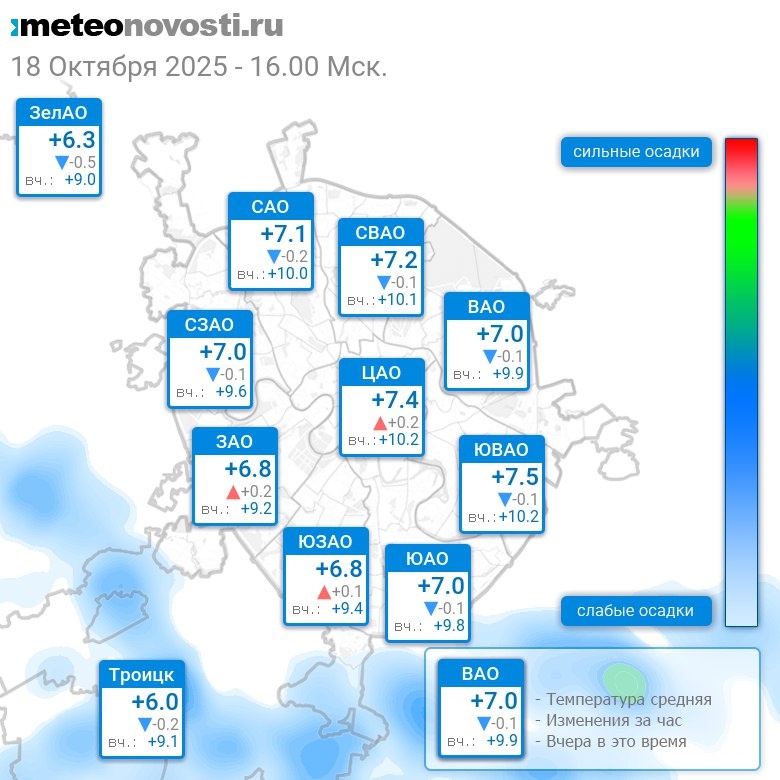 В 16:00 в Москве было от +5.7°C до +7.7°C, средняя температура +7°C #погода #Москва #осень #температура #18октября #суббота Перейти на сайт Прогноз погоды на 14 дней