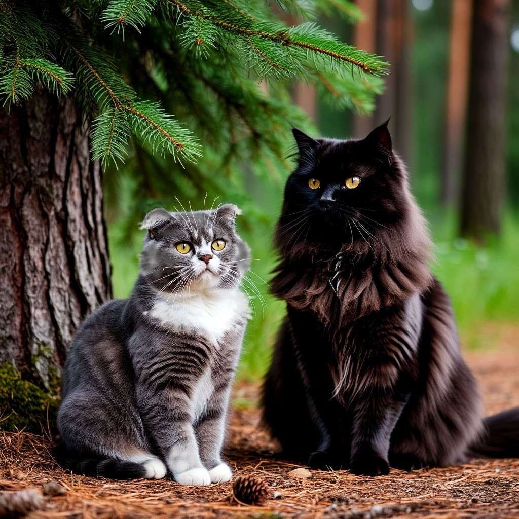 Я выпустила из переносок своих кошек и те, настороженно начали обнюхивать полянку, пенёк и самого хозяина.