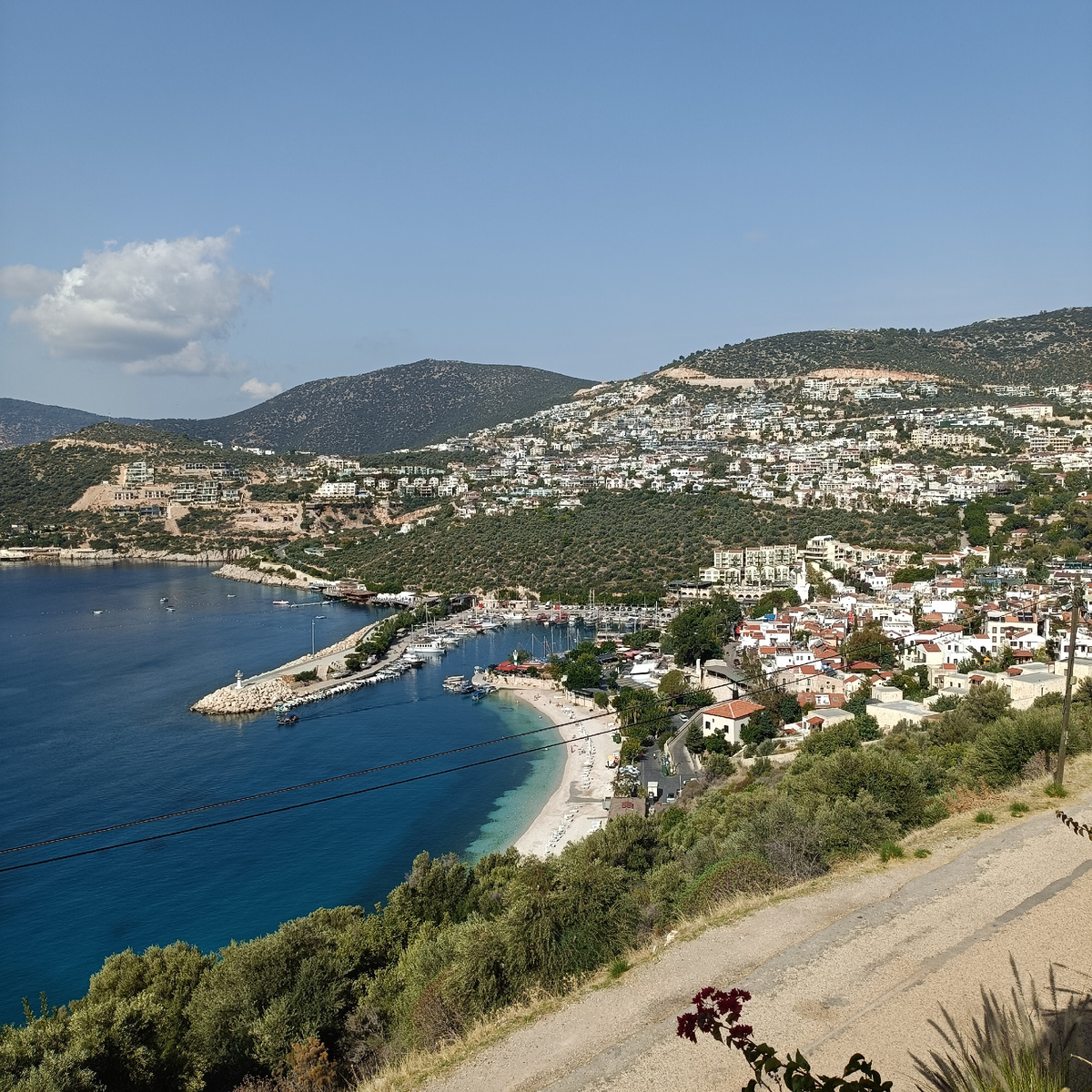 Сегодня день экскурсионный. Я не особо люблю экскурсии, несущие какую-то смысловую нагрузку. Люблю те, которые относятся к категории "зыринг". Сегодняшняя прям она и есть, еще и с купанием в теплом морюшке. Ну, поехали. В начале 9-го меня забрали из отеля и мы поехали. Нас было 11, ехали на микроавтобусе, и он был не полный. Люблю такое. Первая остановка на смотровой площадке города Калкан. В сам город не ходили, сделали фото и поехали дальше. Дальше смотровая города Каш. По дороге проезжали мимо греческого острова. Туда пускают только с визой. Хотя гид сказала, что они на лодке подплывали и никто их не остановил🤫 А вот и греческий остров на заднем плане - самый последний. Ну а дальше была прогулка по самому городу (напомню, что мы приехали в Каш). Гид показала основную улицу, какую-то гробницу и отпустила гулять на все 4 стороны. Люблю такое. Город мне понравился, очень уютный. Похож на Греческий или Киприотский? (Кипрский?). Ну они все рядом. Узенькие улочки. Аккуратные доми
