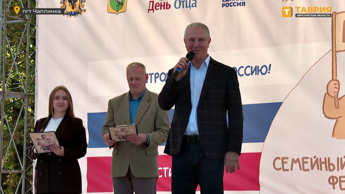 В преддверии Дня отца, который отмечается в России 20 октября, в Чаплинке Херсонской области состоялся семейный фестиваль «БАТЯ-фест». Мероприятие собрало представителей из всех муниципальных округов региона, передают корреспонденты «Таврии». Губернатор Владимир Сальдо поздравил отцов с наступающим праздником и открыл фестиваль. В своем выступлении он подчеркнул важность семейных ценностей. «Добрые семейные ценности, традиции, которые в каждой семье есть свои, где-то общие, их надо беречь и передавать это все своим деткам. <...> Мы во многом равняемся на своих родителей. Мама, конечно, без нее никуда, но без папы не было бы, наверное, детей», — сказал глава региона. Сальдо отметил, что идея проведения фестиваля принадлежит местному отделению партии «Единая Россия». Он пожелал всем отцам гордиться своими детьми и напомнил, что дети также гордятся своими папами. На фестивале более ста участников из девяти округов представили батины мастерские, рецепты блюд и творческие номера. Для зрител