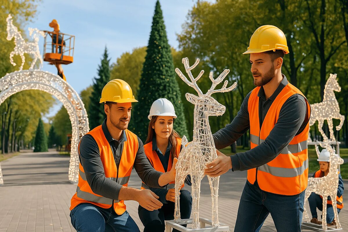 Представьте себе 12-метровую световую елку, которая должна выдержать порывы ветра до 25 м/с и при этом сохранить идеальную геометрию — именно такие задачи ежедневно решают профессиональные монтажники световых инсталляций. Установка уличных световых фигур — это высокотехнологичный процесс, где каждый болт, каждый анкер и каждый метр троса рассчитывается с инженерной точностью. Современный монтаж световых конструкций объединяет традиционные строительные технологии с передовыми методами работы с LED-оборудованием, требуя от специалистов глубоких знаний в области электротехники, механики и материаловедения. Качество монтажа определяет не только внешний вид инсталляции, но и ее безопасность, долговечность и стоимость эксплуатации на протяжении всего жизненного цикла.
