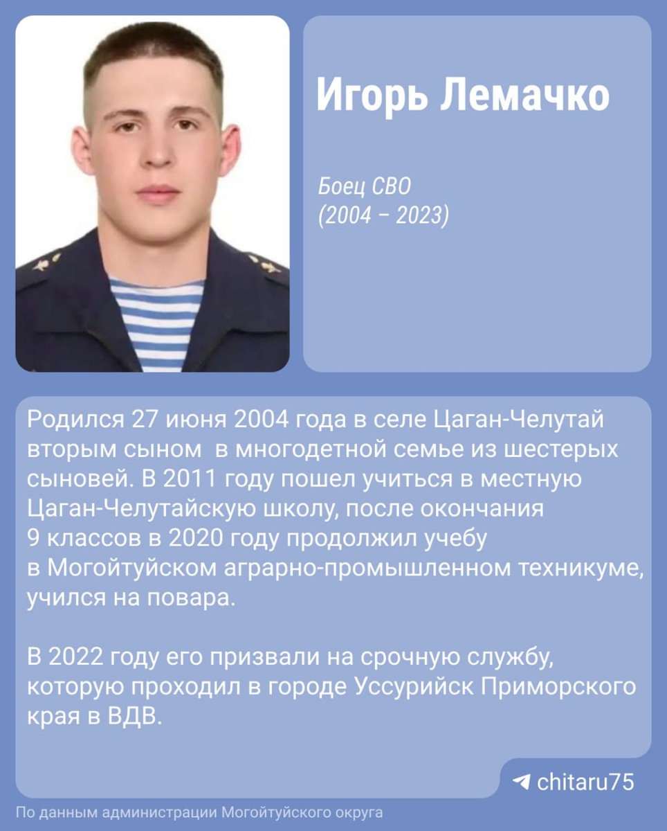 19-летний снайпер из Забайкалья погиб на СВО спустя 2 месяца боев. В мае 2023-го забайкалец заключил контракт с Минобороны и добровольцем отправился на спецоперацию. Он был снайпером-стрелком, позже стал командиром отделения. Спустя два месяца, 24 июля 2023 года, погиб в боях за поселок Клещеевка в ДНР. В тг-канале Могойтуйского округа пишут, что парень показал высокий уровень подготовки: За время участия в СВО проявил себя высокопрофессиональным, дисциплинированным и морально устойчивым воином. Показал личное мужество и самоотверженность. 🟦 Подписаться