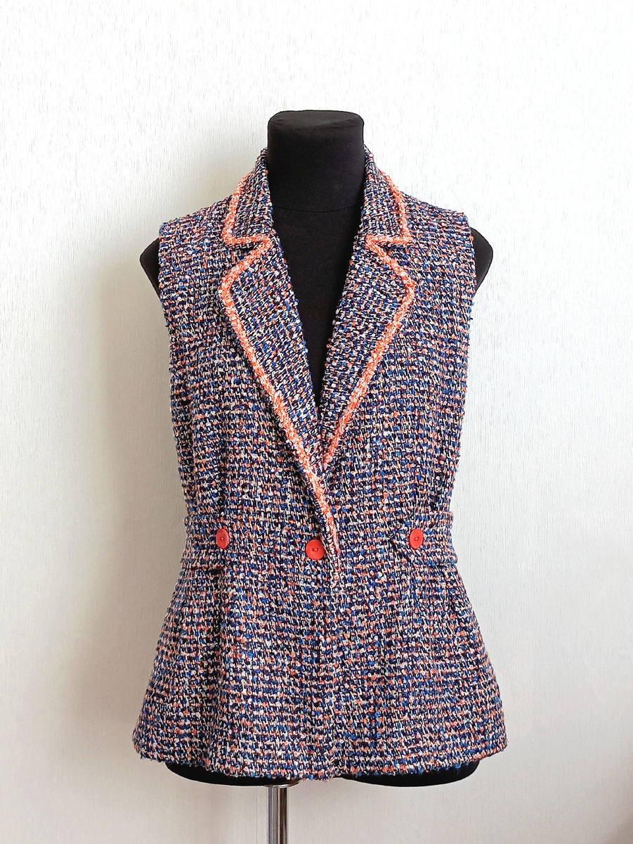 Жилет из буклированного твида по выкройке Burda 2/2017 модель 101. Расход около 1,5 м на 38 размер, подкладка вискоза, декор по краю воротника сплела из ниток основной ткани.