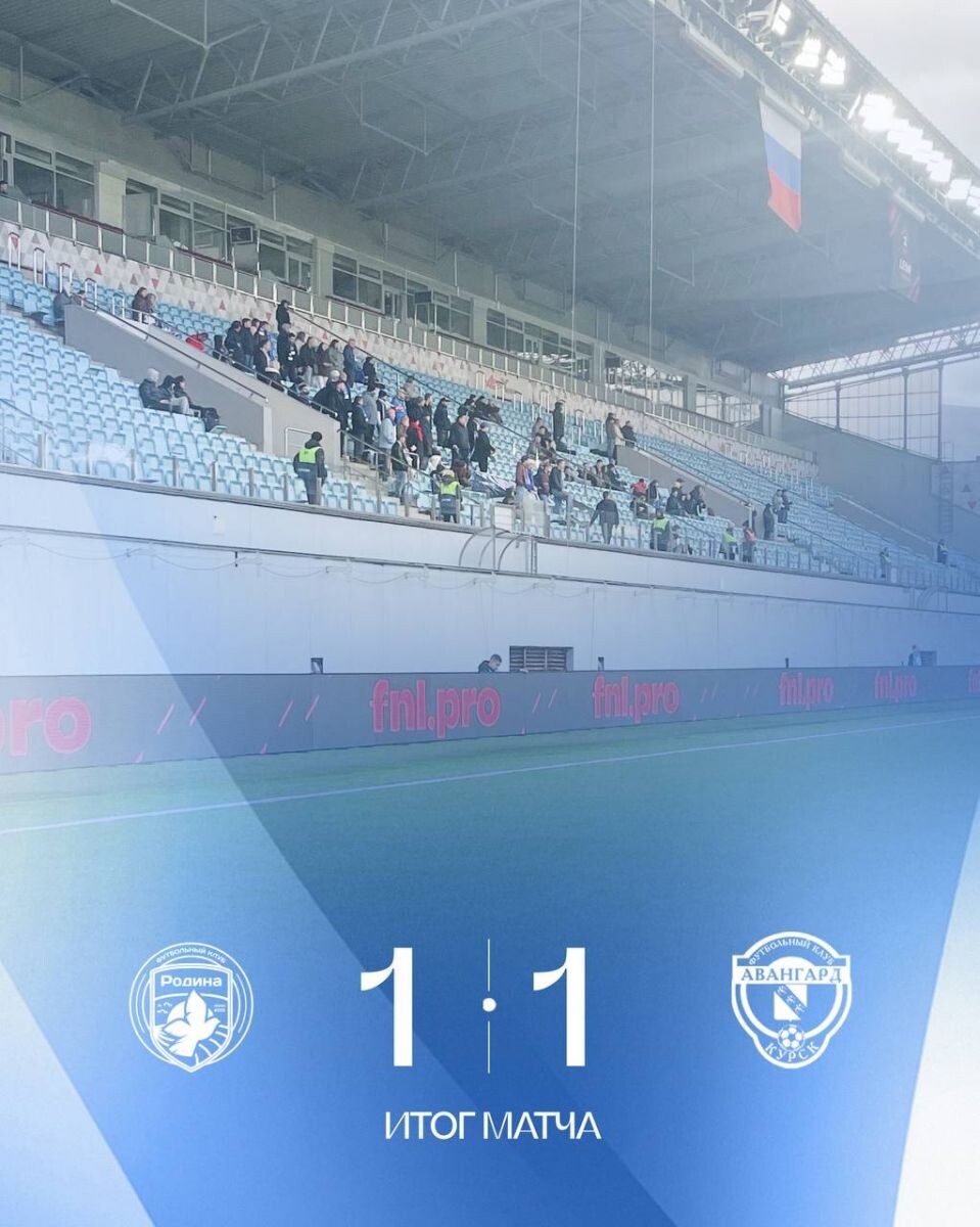 Завершился матч в рамках Второй лиги дивизиона «А» между московской «Родиной-2» и курским «Авангардом», который завершился со счетом 1:1. В первом тайме команды демонстрировали напряженную борьбу, в ходе которой было показано четыре желтые карточки: две игрокам московского клуба и две футболистам курской команды. Во второй половине игры на 81-й минуте Бескоровайный открыл счет, поразив ворота «Родины-2», однако уже на 83-й минуте Бамутов сравнял положение дел, установив окончательный результат встречи. По итогам матча «Авангард» сохранил седьмую позицию в турнирной таблице, в то время как «Родина-2» продолжает удерживать лидерство в чемпионате. Данная игра стала заключительной в текущем сезоне для курского клуба. 0+