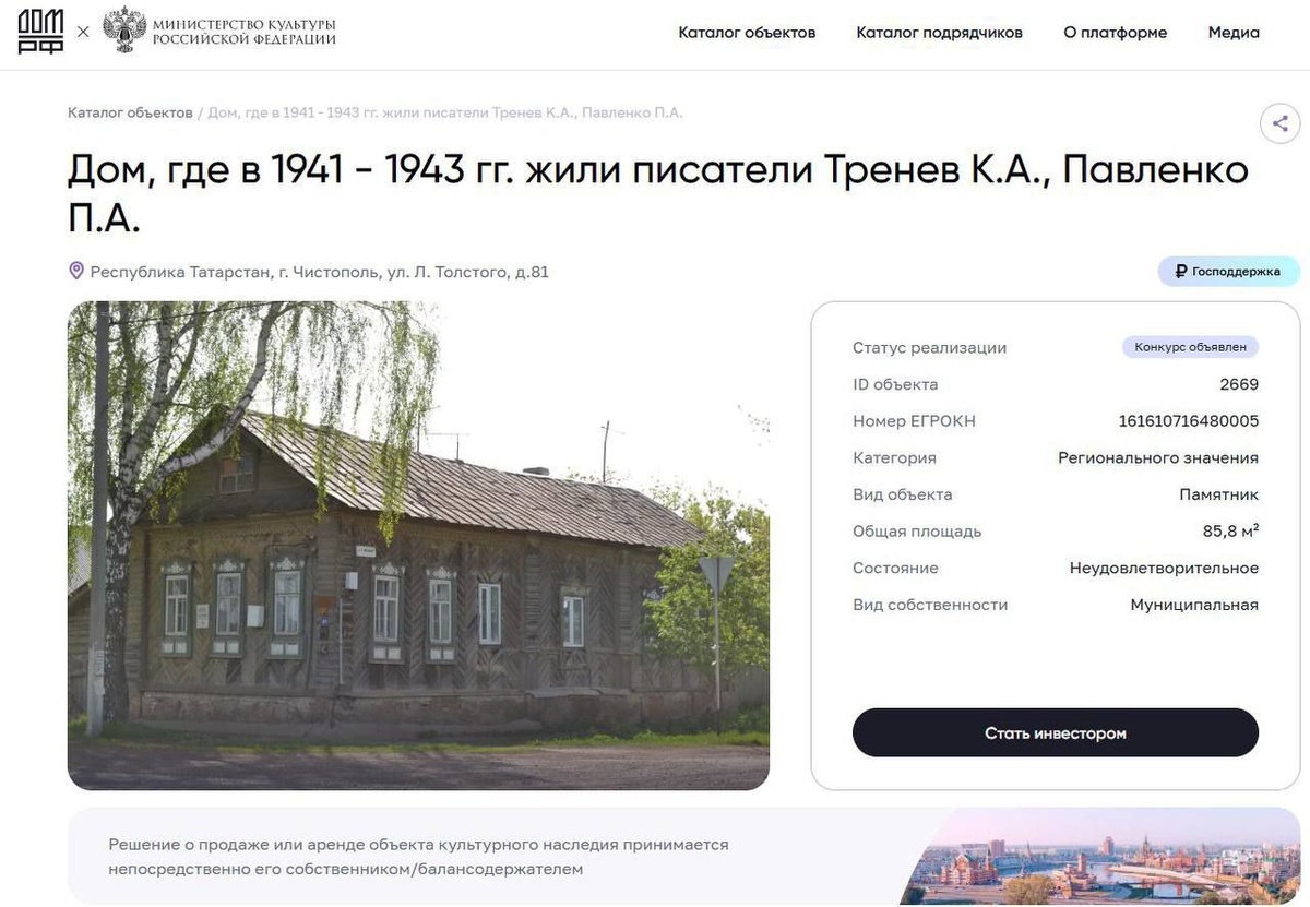 😯 В Татарстане за 1 рубль продают дом Это объект культурного наследия в Чистополе — дом, в котором жили известные писатели. Однако он в неудовлетворительном состоянии. Покупатель будет обязан провести там ремонт и реставрацию за свои деньги 😃 Подписывайся на most| Набережные Челны | Пришли свою новость