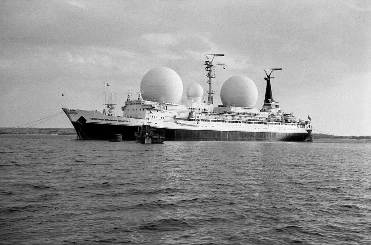 Советское научно-исследовательское судно «Космонавт Владимир Комаров» на рейде в бухте Съенфуэгос