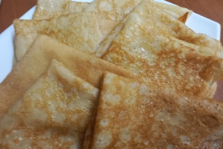Таким образом готовим остальные блины. Завариваем чай или кофе. После этого приглашаем всех к столу. К блинами подаем мед, сметану, а ещё у меня свой домашний творожный сыр. В него можно добавить травы, мелко нарезанную солёную рыбу. Такая начинка будет вкуснейшим дополнением к блинам.