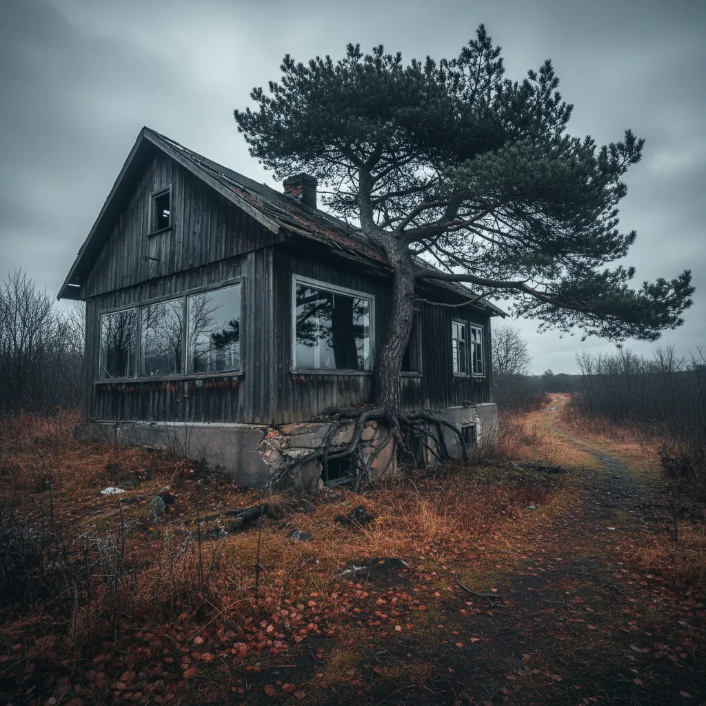 Никто уже не помнил, кому принадлежала дача на холме, где черная сосна росла сразу из треснувшего фундамента. Дом стоял пустым, как на выдохе, и окна его отражали не небо, а то, что оставалось позади спины смотрящего. Сюда не вели отметки на картах, сюда не вело любопытство — кроме моего. Я приехал в конце октября, когда земля еще не замерзла, но уже отказывалась слышать шаги, и осенний ветер, казалось, хранил в себе речь, не предназначенную для уха.