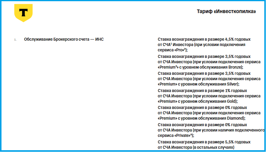 Об очень интересном нововведении мне рассказал подписчик Максим, спасибо ему за это. Оказывается, что с 20 октября Т-Банк вводит комиссию по своей инвест копилке. Новые тарифы уже опубликованы на сайте банка, посмотреть их можно вот тут. Кстати, а вам приходило уведомление об этом? Но поскольку в тарифе не указана дата вступления в силу данных изменений, мне пришлось написать в службу поддержки. И техническая поддержка пояснила, что комиссия вводится только для стратегии "всегда в плюсе " с 20 октября, то есть с понедельника, именно по этой стратегии покупаются фонды денежного рынка! И осмелюсь предположить, что она и подключена у большинства клиентов банка. Но есть исключения, комиссия не будет взиматься если подключен "счет под ключ". Теперь самое интересное - размер комиссий. И хочу пояснить, что эта комиссия не имеет никакого отношения к комиссии за управление. То есть Т-Капитал берет отдельно комиссию за управление, а еще и эту: Комиссия начисляется ежедневно, посмотреть ее можно
