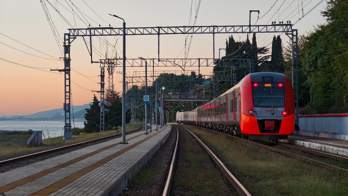 Ласточка ЭС1-040+ЭС1 на боковом пути станции Чемитоквадже