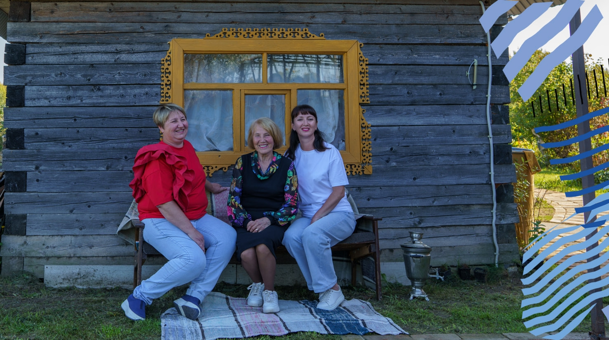 Вот, говорят, будет фотоперепись нашей деревни. «Приезжай!» – говорю младшей дочери Марине. Она живет в Игре, но приехала. Остальные не смогли, поскольку день был рабочим. А мужья у всех на вахте. И место для фотографии надо было подобрать какое-нибудь необычное. Не в цветниках, не на поляне, а именно особенное место. «Давай, – говорю дочери, – встанем у старого забора, развесим на нем половики. Или второй вариант – у нас в доме в углу есть свой музей со старинными вещами, давай на фоне этих музейных экспонатов!» А третий вариант предложила дочь: старый дом с наличниками, которые расписывал и вырезал мой муж. Фотограф выбрал этот третий вариант. И мы втроем с дочками сфоткались, веселые, жизнерадостные!