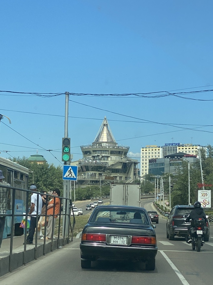 В Улан-Удэ заехали на пару часов. И вот перед нами настоящая столица. Столица Бурятии! Интересные и красивые дома в современном стиле. Дороги со сложными развязками, в целом красиво и ухожено. Тут даже есть трамваи, из-за этого, конечно, нет нормальных дорог, но уже считай прогресс.