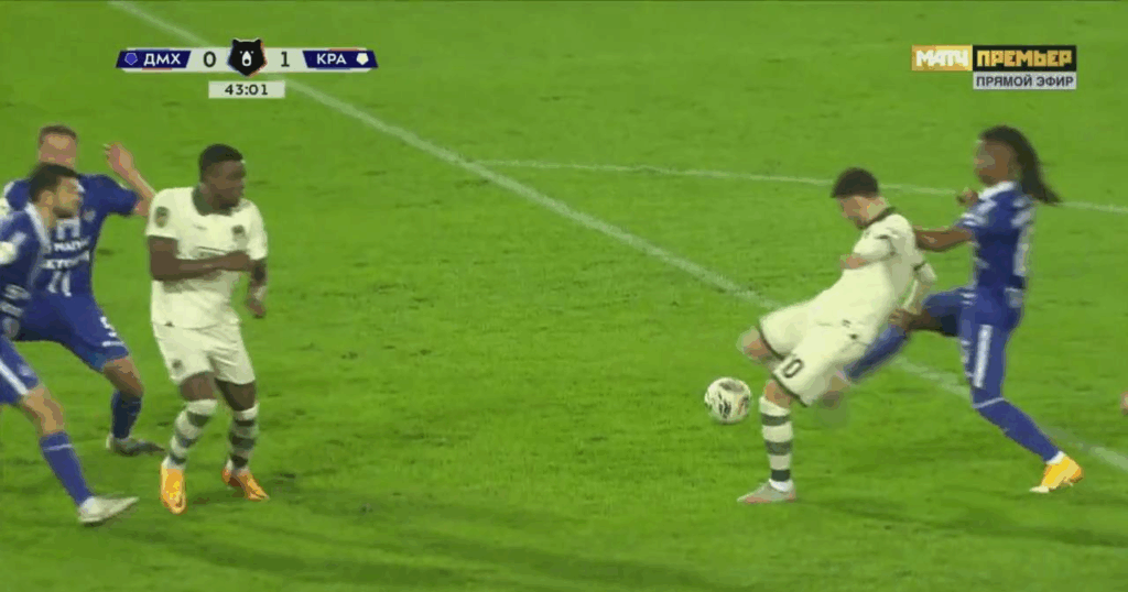 Сперцян вывел «Краснодар» вперед в концовке первого тайма с «Динамо» Махачкала
