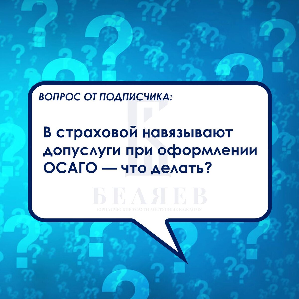 Вопрос дня: «В страховой навязывают допуслуги при оформлении ОСАГО — что делать?» 🚗 Частая история: приходите за полисом ОСАГО, а вам пытаются «в комплект» добавить жизнь, ассистанс, диагностическую карту, техосмотр у «своих». Важное правило: ОСАГО = отдельный полис, всё остальное — по вашему желанию. 🧭 Как действовать спокойно и по делу 🪪 Попросите оформить только ОСАГО и назвать тариф: базовая ставка + коэффициенты (регион, возраст/стаж, КБМ и т. д.). 🧾 На предложение «без этого не оформим» ответ простой: «Прошу оформить ОСАГО без сопутствующих продуктов. Иначе прошу письменный отказ с указанием причины». Письменный отказ обычно «чудесно лечит» навязывание. 💳 Если уже включили лишнее — требуйте исключить услуги до оплаты. После оплаты — заявление на отказ и возврат денег по каждой навязанной услуге (у допстраховок есть период охлаждения; у сервисов — условия расторжения, обычно тоже возвратимый). 🌐 Оформляйте электронный полис на сайте страховщика/через проверенный агрегатор
