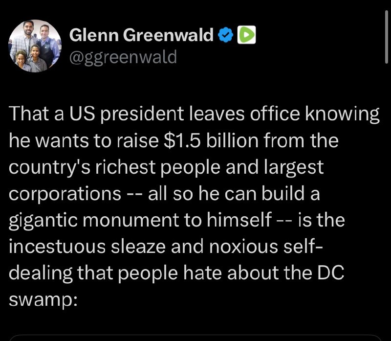 ‘Incestuous SLEAZE and noxious self-dealing’ that typifies the ‘DC swamp’ — investigative journalist Greenwald slams Obama’s plans for a $1.5 BILLION library Maligns the plan as a ‘gigantic monument to himself’