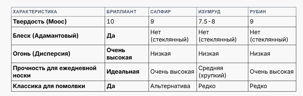 В этой статье мы проведем детальное сравнение драгоценных камней, разберем их преимущества и недостатки и поможем понять, почему именно алмаз, ограненный в бриллиант, уже несколько веков остается фаворитом.